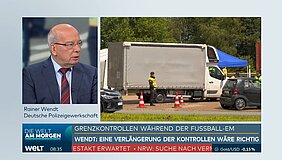 Zur Debatte um die Verlängerung der Grenzkontrollen über die Fußball-EM hinaus war Rainer Wendt, Bundesvorsitzender der Deutschen Polizeigewerkschaft, zu Gast bei WELT TV.